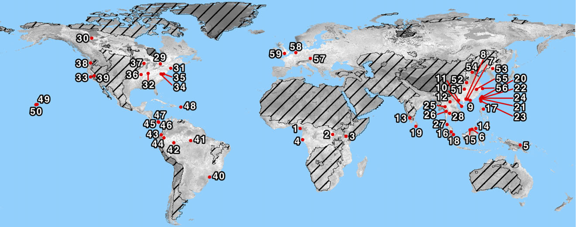 Anderson-Teixeira K. et al. 2015 . CTFS-ForestGEO: a worldwide network monitoringforests in an era of global change. Global Change Biology 21: 528-549.